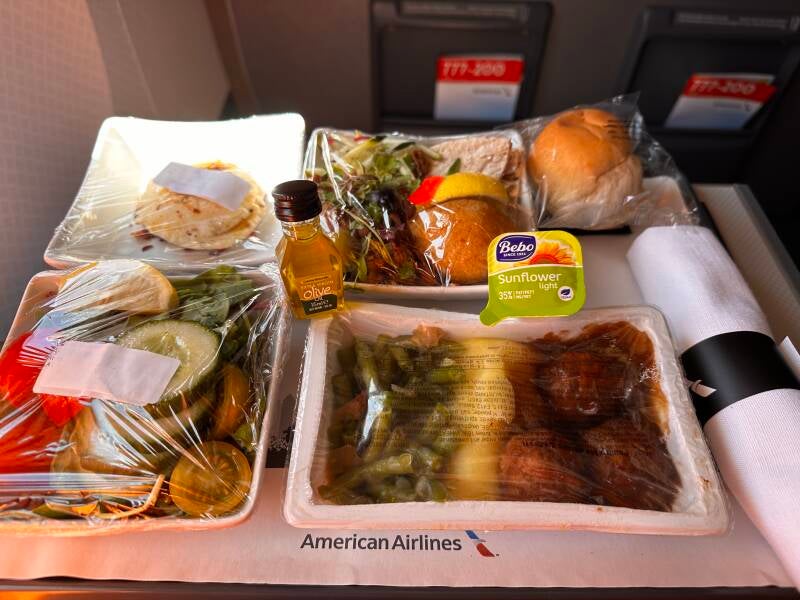 Dann der Schock: Das Platzangebot in der Economy bei American Airlines ist so knapp gehalten, dass selbst Nicole sich eher beengt fühlte. Eigentlich waren wir davon ausgegangen, dass man auf