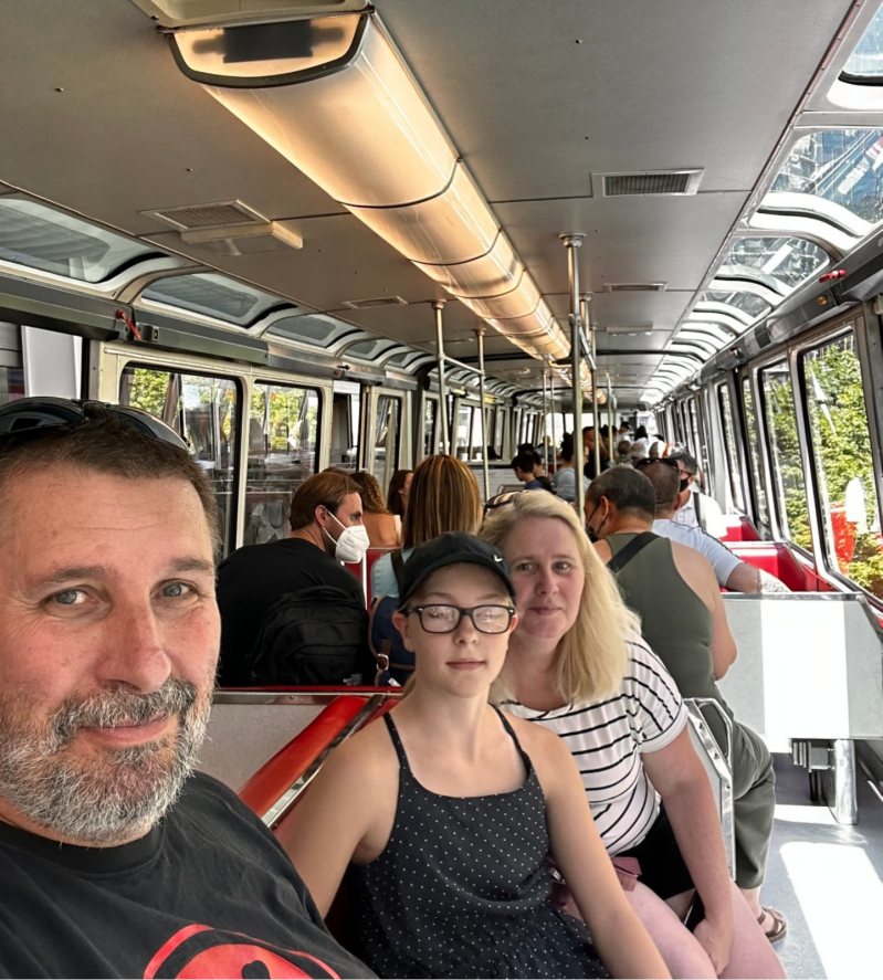 Der weitere Plan war, sich per Mono-Rail zur Space Needle zu begeben. Die Mono-Rail startet am Seattle City Center (ein Einkaufscenter), und die Tickets kosteten für uns alle 17$. Wir hatten „Round Trip“ gewählt, gilt den ganzen Tag. Wir hätten eventuell mal nachsehen sollen, wie lang diese Bahn eigentlich ist. Nach 3 Min. war die Fahrt schon wieder vorbei und wir waren an der Space Needle angekommen. Nicht grad die ökonomischte Art, sich durch Seattle zu bewegen…